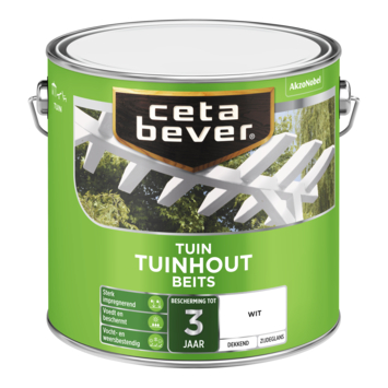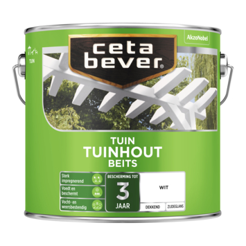CetaBever Tuinhoutbeits zijdeglans dekkend wit 2,5 liter dringt diep in het hout, is vochtregulerend en waterafstotend en biedt tot 3 jaar bescherming van binnenuit. CetaBever Dekkend Tuinhoutbeits is ideaal voor het beschermen van zowel hard- als zachthouten pergola’s, speeltoestellen en ander tuinhout, zoals tuinmeubilair en schuttingen. Deze beits is verkrijgbaar als mengverf, zodat je elke gewenste kleur kunt bestellen, inclusief kleuren van Flexa, Sikkens en Sigma.