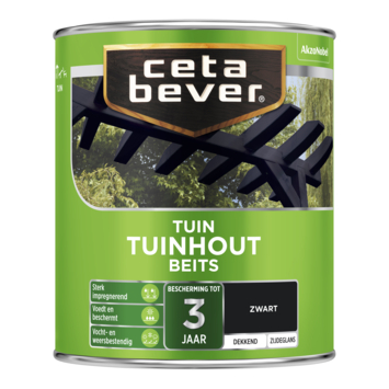 CetaBever Tuinhoutbeits zijdeglans dekkend zwart 750 ml dringt diep in het hout, is vochtregulerend en waterafstotend en biedt tot 3 jaar bescherming van binnenuit. CetaBever Dekkend Tuinhoutbeits is ideaal voor het beschermen van zowel hard- als zachthouten pergola’s, speeltoestellen en ander tuinhout, zoals tuinmeubilair en schuttingen. Deze beits is verkrijgbaar als mengverf, zodat je elke gewenste kleur kunt bestellen, inclusief kleuren van Flexa, Sikkens en Sigma.