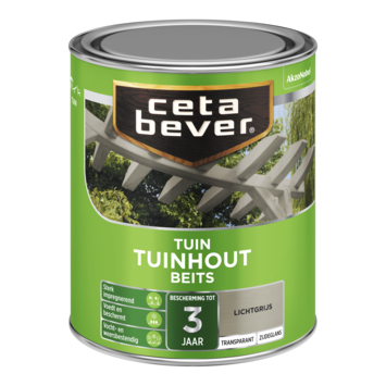 CetaBever Tuinhoutbeits zijdeglans transparant licht grijs 750 ml is een oplosmiddelhoudende tuinbeits, verkrijgbaar in diverse transparant kleuren en mengbaar in de bouwmarkt in alle kleuren! Tuinhoutbeits is sterk impregnerend en voedt en beschermt jouw hout langdurig tegen weersinvloeden. Afhankelijk van blootstelling aan zonlicht, de kwaliteit van het hout en het aantal lagen, kan het aantal jaren bescherming afwijken.