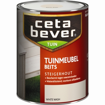 Cetabever tuinmeubelbeits transparant white wash 750 ml is is een terpentine gedragen tuinbeits, verkrijgbaar in diverse kleuren en te mengen in iedere gewenste transparante kleur. Tuinmeubelbeits is waterafstotend en beschermt uw hout langdurig tegen weersinvloeden.