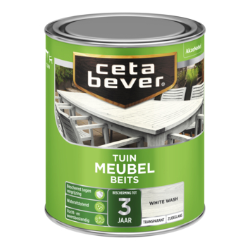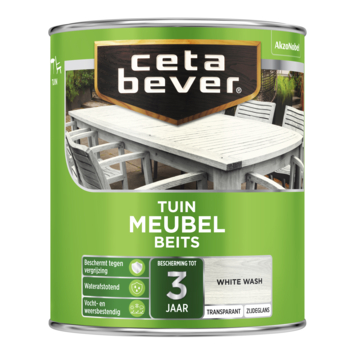Met CetaBever Tuinmeubelbeits zijdeglans transparant white wash 750 ml bescherm je je tuinmeubels tot wel 3 jaar tegen weersinvloeden. Deze watergedragen beits is waterafstotend en voorkomt dat het hout gaat afbladderen. Verkrijgbaar in diverse kleuren en te mengen in elke gewenste transparante tint.