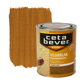 De CetaBever vloerlak zijdeglans licht eiken transparant 750 ml is een zijdeglanzende, dekkende, waterverdunbare vloerlak voor binnen. Het is een slijt-, stoot- en krasvaste vloerlak die zeer geschikt is voor bescherming van je zacht- en hardhouten vloeren binnenshuis. CetaBever vloerlak beschermt en verzorgt het hout en geeft je hout een prachtige transparante kleur. Het is geurarm en snel droog waardoor je de vloerlak probleemloos binnenshuis kunt gebruiken. De CetaBever vloerlak zijdeglans licht eiken transparant 750 ml is goed reinigbaar waardoor je vloer lang mooi blijft.