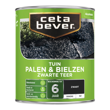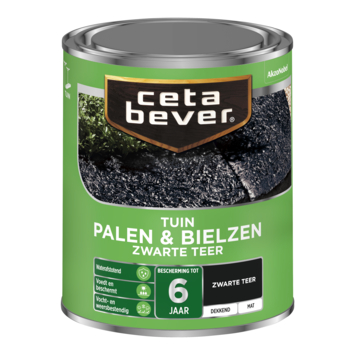 Met CetaBever Palen & Bielzen zwarte teer 750 ml bescherm je hout langdurig tegen vocht en weersinvloeden. Deze terpentine verdunbare beits met een zijdeglans afwerking is waterafstotend en biedt tot 6 jaar bescherming. Ideaal voor een dekkende afwerking van palen, bielzen en rolborders, ook als ze al eerder behandeld zijn met carbolineum of zwarte teer.