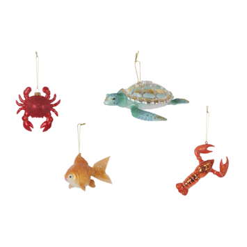 De Christmas Goods glasfiguur kersthanger zeedieren divers per stuk brengt een speels en uniek accent in jouw kerstboom. Kies uit prachtige glazen ontwerpen van een schildpad, kreeft, vis of krab en creëer een vrolijke onderwaterwereld in je kerstdecoratie. Omdat ze per stuk te koop zijn, stel je zelf een collectie samen die perfect aansluit bij jouw stijl.