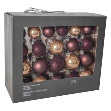 Christmas Goods kerstballen mix glas 42 stuks chocoladebruin