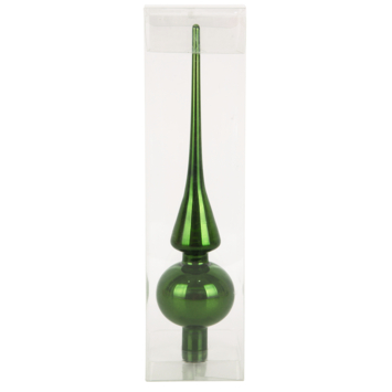 De Christmas Goods piek glas 26 cm dennengroen maakt jouw kerstboom helemaal af. Deze elegante piek in een diepe dennengroene kleur geeft een klassieke en stijlvolle uitstraling aan je boom. Met een lengte van 26 cm is hij perfect in verhouding voor zowel middelgrote als grote kerstbomen. Het gladde glas zorgt voor een luxe glans, waardoor de piek prachtig opvalt tussen de takken en verlichting. Een mooie keuze voor wie houdt van een traditionele finishing touch tijdens de feestdagen.