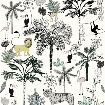 Van het Claas fotobehang jungle beige zal je kind helemaal blij worden. Het behang heeft een vrolijke print en is eenvoudig aan te brengen. Voor een zo goed mogelijk resultaat dienen de te beplakken oppervlaktes droog, egaal van kleur en vlak te zijn. Dit behang is ook te koop in een lichtblauwe of groene uitvoering en is onderdeel van onze collectie Claas kinderbehang.