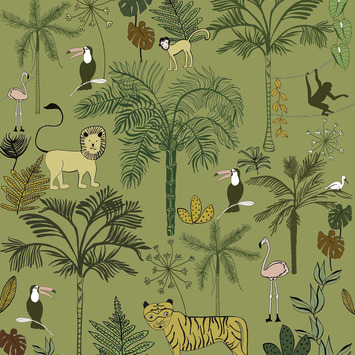Van het Claas fotobehang jungle donkergroen zal je kind helemaal blij worden. Het behang heeft een vrolijke print en is eenvoudig aan te brengen. Voor een zo goed mogelijk resultaat dienen de te beplakken oppervlaktes droog, egaal van kleur en vlak te zijn. Dit behang is ook te koop in een lichtblauwe of beige uitvoering en is onderdeel van onze collectie Claas kinderbehang.