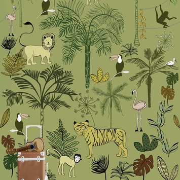 Van het Claas fotobehang jungle donkergroen zal je kind helemaal blij worden. Het behang heeft een vrolijke print en is eenvoudig aan te brengen. Voor een zo goed mogelijk resultaat dienen de te beplakken oppervlaktes droog, egaal van kleur en vlak te zijn. Dit behang is ook te koop in een lichtblauwe of beige uitvoering en is onderdeel van onze collectie Claas kinderbehang.