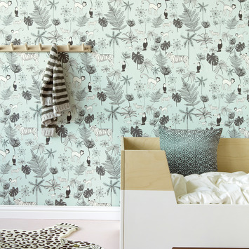 Heel mooi behang, leuke print en leuke prijs! De kleur vindt ik alleen meer lichtblauw dan lichtgroen. Drukke print maar oogt rustig doordat de dieren niet zijn ingekleurd maar zwart/wit, erg mooi!