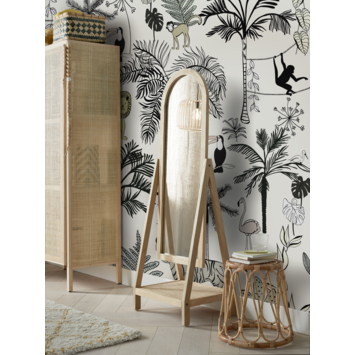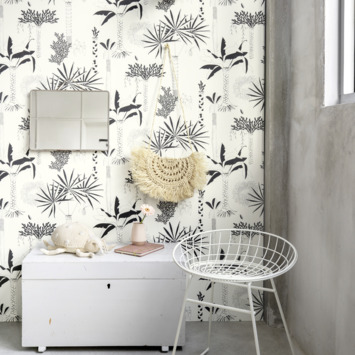 Van het Claas vliesbehang palm wit/zwart (dessin 540031) zal je kind helemaal blij worden. Het behang heeft een vrolijke print en is eenvoudig aan te brengen. Voor een zo goed mogelijk resultaat dienen de te beplakken oppervlaktes droog, egaal van kleur en vlak te zijn. Dit behang is ook te koop in een greige/zwarte uitvoering (dessin 540048) en is onderdeel van onze collectie Claas kinderbehang.