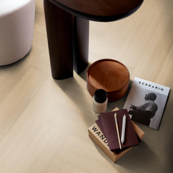 Het onderhoud van de Click PVC Heringa visgraat bruin eiken houtlook is eenvoudig en vergt weinig inspanning. Regelmatig stofzuigen, vegen en licht dweilen houden de vloer in topconditie. Het gebruik van een deurmat helpt om vuil buiten de deur te houden, terwijl viltplakkers onder meubels en een beschermmat onder bureaustoelen met wieltjes slijtage kunnen voorkomen. Deze eenvoudige onderhoudstips zorgen ervoor dat je vloer er jarenlang mooi uit blijft zien.