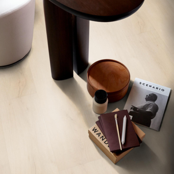 Het onderhoud van de Click PVC Lazaro rechte stroken beige eiken houtlook is eenvoudig. Regelmatig stofzuigen, vegen en af en toe licht dweilen is voldoende om de vloer in topconditie te houden. Het gebruik van een deurmat helpt om vuil van buiten te verminderen, terwijl viltplakkers onder meubels en een beschermmat onder bureaustoelen met wieltjes de slijtage kunnen minimaliseren, zodat je vloer er altijd als nieuw uitziet.