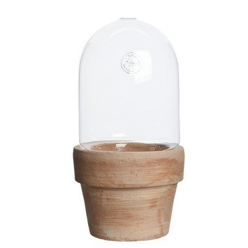 Cloche glas pot terracotta is een mondgeblazen glazen vaas met een terracotta onderkant. Door de combinatie van materialen is de cloche zowel modern als sfeervol. De cloche is leuk om te vullen met decoratie en zorgt voor een trendy look in uw huis. Op welke plek je de cloche ook neerzet, deze zal meteen de aandacht trekken. Cloche glas pot terracotta heeft een diameter van 14 cm en een hoogte van 28 cm.