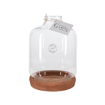 Cloche met bord hoog terracotta/glas Ø24x29 is gemaakt van mondgeblazen glas en aardewerk, en is zo modern en sfeervol tegelijk. De cloche is leuk om te vullen met decoratie en zorgt voor een trendy look in uw huis. Waar u de cloche ook neerzet, deze trekt meteen de aandacht. Cloche met bord hoog terracotta/glas Ø24x29 heeft een diameter van 24 cm en een hoogte van 29 cm. Dit item is ook verkrijgbaar in een andere maat.