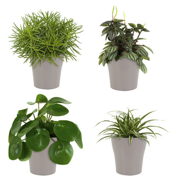 - Inhoud: Pannenkoekplant, Peperomia, Chlorofyrum, Senecio