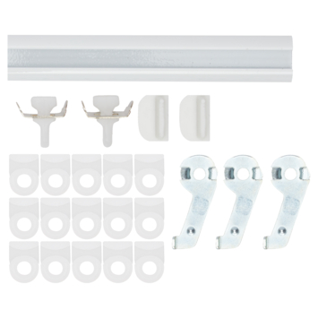 De gordijnrail Subtile wit 150 cm is een slank vormgegeven gordijnrail welke past in elk interieur. Het unieke van deze gordijdnrail is de mooie slanke afwerking en "onzichtbare" montagesteunen. Het aluminium materiaal is gelakt in een witte kleur. Deze gordijnrail is geschikt voor plooigordijnen en is heel eenvoudig op maat te maken met een ijzerzaag. Deze rail wordt geleverd met 15 runners, 3 plafondsteunen, 2 eindstoppers en 2 eindkapjes. De meegeleverde runners glijden soepel door de rail en de rail bevestig je met de bijgeleverde plafondsteunen aan je plafond. De steunen zijn na montage bijna niet meer zichtbaar. Met deze complete set heb je alles in huis om je gordijn makkelijk en snel te installeren.