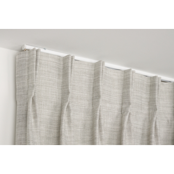 De gordijnrail Subtile wit 200 cm is een slank vormgegeven gordijnrail welke uitstekend past in elk interieur. Het unieke van deze rail is de mooie slanke afwerking en "onzichtbare" montagesteunen. Het aluminium materiaal is gelakt in een witte finish. Deze gordijnrail is geschikt voor plooigordijnen en is heel eenvoudig op maat te maken met een ijzerzaag. Deze rail wordt geleverd met 20 runners, 4 plafondsteunen, 2 eindstoppers en 2 eindkapjes. De meegeleverde runners glijden soepel door de rail en de rail bevestig je met de bijgeleverde plafondsteunen aan je plafond. De steunen zijn na montage bijna niet meer zichtbaar. Met deze complete set heb je alles in huis om je gordijn makkelijk en snel te installeren.