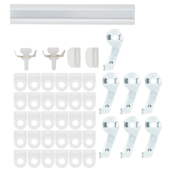 De gordijnrail Subtile wit 300 cm is een slank vormgegeven gordijnrail welke uitstekend past in elk interieur. Het unieke van deze rail is de mooie slanke afwerking en "onzichtbare" montagesteunen. Het aluminium materiaal is gelakt in een witte finish. Deze gordijnrail is geschikt voor plooigordijnen en is heel eenvoudig op maat te maken met een ijzerzaag. Deze rail wordt geleverd met 30 runners, 7 plafondsteunen, 2 eindstoppers en 2 eindkapjes. De meegeleverde runners glijden soepel door de rail en de rail bevestig je met de bijgeleverde plafondsteunen aan je plafond. De steunen zijn na montage bijna niet meer zichtbaar. Met deze complete set heb je alles in huis om je gordijn makkelijk en snel te installeren.