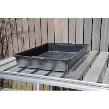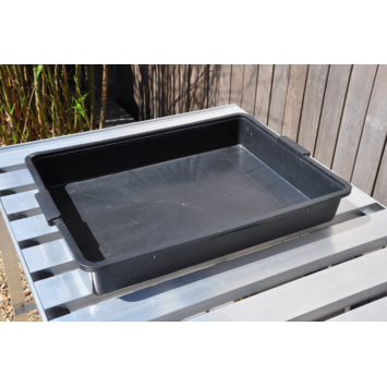 Het gebruik van een kweekbak is voor de kweker die zelf zaait en verspeent een must. Deze sterke kunststof kweekbak is van een zware kwaliteit en word geleverd in een zwarte kleur. De kweekbak is volledig waterdicht en vormt daarmee een ideale waterbuffer voor zaaibakjes en planten in kweekpotten. Maatvoering van de kweekbak: 39 (b) x 54 (l) x 9 (h) cm, met een inhoud van circa 15 liter.