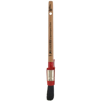 De Copenhagen Gold kwast alkyd rond maat 8 is een echte kwaliteitskwast. Het schildersgereedschap van Copenhagen Gold is van zeer hoge kwaliteit en wordt al jaren gebruikt door zowel de thuis als de professionele schilder. Deze kwast is uitgevoerd met een vermessingde bus, katoenen woeling en een gewaxte beukenhouten steel waardoor hij robuust aanvoelt en zeer prettig in de hand ligt. Met zijn haarbezetting van zwart Chinees varkenshaar is deze kwast bij uitstek geschikt is voor het aanbrengen van verf op oplosmiddelenbasis. Deze kwast is een prima keus voor bijna elke verfklus.
