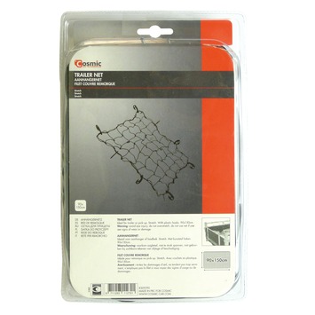 Het Cosmic aanhangernet elastisch 90x150 cm is een elastisch net om losse goederen in een aanhanger mee te overspannen zodat deze er niet uit kunnen vallen tijdens transport. Het net is voorzien van haken aan de rand waardoor het eenvoudig te bevestigen is. Het elastische aanhangernet is niet geschikt voor het vervoeren van zand.