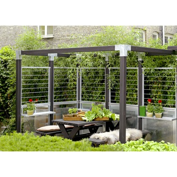 Met het Cubic scherm metalen plaat met frame 90x90 cm is succes verzekerd. Met het Cubic pergola systeem maak je eenvoudig een constructie door gebruik te maken van houten palen en de bijbehorende Cubic verbindingselementen. Kies vervolgens één of meerdere Cubic schermen om het geheel stijlvol te voltooien. Dit element heeft een afmeting van 90 bij 90 centimeter en is gemaakt van een gegalvaniseerde metalen plaat. Doordat het geheel stevig in een gegalvaniseerd frame zit, kan het scherm eenvoudig met de meegeleverde steunplaten in het houten frame worden bevestigd.