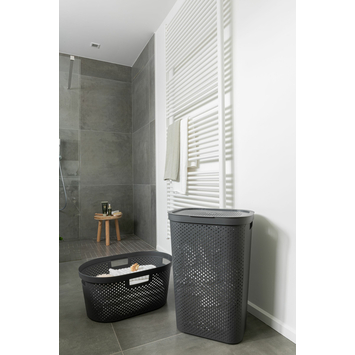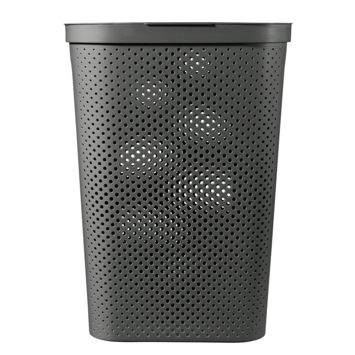 De Curver Infinity Dots wasmand 60L in de kleur antraciet is gemaakt van volledig gerecycled materiaal. Dankzij de open structuur kan het wasgoed voldoende luchten. De Infinity Dots wasmand is voorzien van comfortabele handvaten en is gemakkelijk schoon te maken. De Dots wasmand 60L is ook verkrijgbaar in de kleur wit en groen.