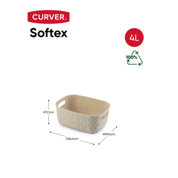 Ontdek de stijlvolle Curver Softex mand in White. Dit model is vervaardigd uit exclusief Softex materiaal, voor 70% gerecycled, en beschikt over een uniek patroon geïnspireerd op traditionele weef- en stiktechnieken. Met comfortabele handvatten en een royale 4L capaciteit is deze mand een echte eyecatcher in jouw woonkamer, slaapkamer of kantoor. Combineer hem moeiteloos met andere Softex manden en geef je interieur een moderne, duurzame uitstraling. Laat je inspireren door design en kwaliteit!
