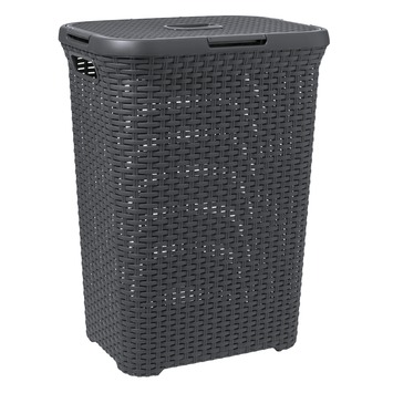 De Curver wasbox Style vintage antraciet 60L heeft dankzij zijn vlechtdesign een moderne uitstraling. Het vlechtdesign heeft een open structuur, hierdoor is er voldoende verluchting voor de was in de wasmand. Het is mogelijk om de rechthoekige wasbox aan zowel de korte als aan de lange zijde te openen. Dit kan door het scharniermechanisme. De Curver wasbox Style 60L is ook verkrijgbaar in wit