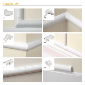 De D-Line accessoireskit bestaat uit 10 verschillende witte (hoek)verbindingsstukken, te gebruiken in combinatie met D-line kabelgoot 30x15 millimeter. Met de D-Line kabelgoten kun je elektriciteitskabels en -snoeren netjes wegwerken. Verpakking: 10-delig.
