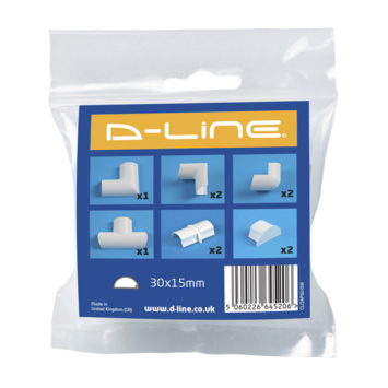 Multipack accessoires met verschillende bochten, connectoren en eindstukken voor het aansluiten van kabellijsten. Werk alle kabels mooi weg met deze eenvoudig aan te sluiten hulpstukken. Kan overschilderd worden.