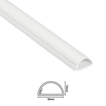 Met de D-line kabelgoot half rond wit 1meter kan je uw (tv-)kabels en snoeren op een eenvoudige manier wegwerken. De halfronde D-line kabelgoot is gemaakt van kunststof en eenvoudig vast te plakken op een vlakke ondergrond. Hij heeft een uniek kliksysteem, waardoor hij gemakkelijk te (her)openen is. De D-line kabelgoot is 30mm breed en 15mm hoog en kan je gebruiken in combinatie met de accessoireskit 30/15mm van D-line.