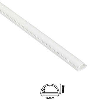 D-Line kabelgoot half rond wit 16x8 mm, voor het netjes wegwerken van elektriciteitskabels en -snoeren. Deze 2 meter lange witte kabelgoot is 16 millimeter breed en 8 millimeter hoog.