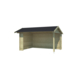 Deze overkapping is voorzien van een schuin aflopend dak met de afwatering aan de achterzijde. Deze Lounge kan gespiegeld worden opgebouwd. De rechterzijde is dan dicht in plaats van de linkerzijde.