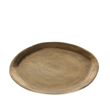 Dit decoratiebord is met de hand gehamerd uit aluminium. Elk bord heeft een authentieke sfeer en geen enkele bord is gelijk. De mooie gouden finish is de trendkleur van het seizoen. Geef de mooiste spulletjes extra aandacht door ze op dit bord te zetten.