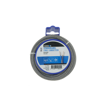 Dit decoratiesnoer heeft een zwart witte mantel die het snoer een decoratief uiterlijk geeft. Het snoer is geschikt om verlichting en licht huishoudelijke apparaten tot maximaal 1380 Watt aan te sluiten. Het snoer heeft twee draden van 0,75 millimeter en een snoerlengte van vijf meter.