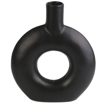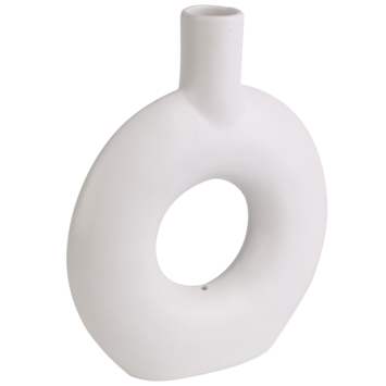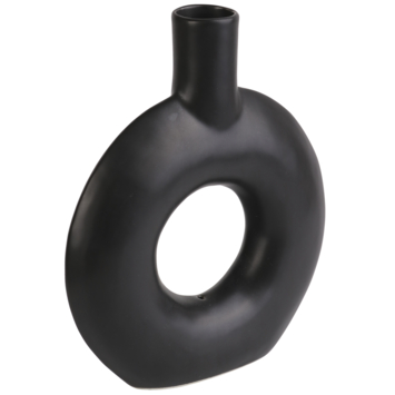 De vaas heeft een leuk rond design en komt in de kleuren wit en zwart
