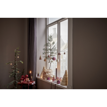 Decoris glasfiguur kersthanger boom maroon 12,6 cm is de perfecte toevoeging voor een elegante, warme kerstboom. De diepe maroon kleur in combinatie met gouden glitter en een gouden ster zorgt direct voor een feestelijke sfeer. Elk glazen figuurtje is zorgvuldig afgewerkt en voorzien van een stevige gouden draad waarmee je ze moeiteloos in de boom hangt. Door hun subtiele formaat en verfijnde details brengen ze een stijlvolle glans in huis en maken ze van elke boom een eyecatcher. Let op: de verschillende kerstfiguren zijn per stuk te koop.