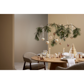 De Decoris kersthanger ster polystyreen foam bruin 20 cm geeft jouw kerstboom een warme en stijlvolle uitstraling. De subtiele bruine kleur en het stervormige ontwerp voegen direct een feestelijk accent toe. Met een lengte van 20 cm, een breedte van 14,5 cm en een hoogte van 2,5 cm is deze hanger groot genoeg om op te vallen, maar past hij harmonieus tussen je andere kerstdecoraties. De lichte en stevige constructie van polystyreen maakt ophangen eenvoudig, terwijl het shatterproof ontwerp zorgt voor een veilige keuze in een huis met kinderen of huisdieren. Plaats deze ster op een prominente plek en combineer hem met andere natuurlijke tinten voor een sfeervol geheel.
