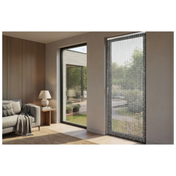 Als je graag de achterdeur openzet om de frisse lucht binnen te laten, dan is het deurgordijn Beads de perfecte oplossing om insecten buiten te houden. Het speelse karakter van het vliegengordijn wordt benadrukt door de witte kralen, die gemonteerd zijn op een aluminium bovenrail. Naast zijn praktische functie voegt dit kralen deurgordijn ook een decoratief element toe aan je interieur. Bovendien maakt het gemakkelijk passeren door het gordijn het ideaal voor huisdieren en kleine kinderen.