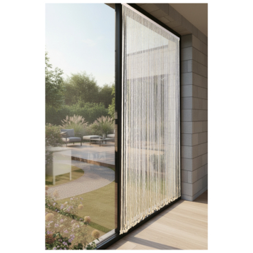 Geniet van frisse lucht in huis terwijl insecten buiten blijven, dankzij het deurgordijn Rope naturel. Uitgerust met een stevige aluminium rail en gemakkelijk om doorheen te lopen, is dit sierlijke touwgordijn een uitstekend alternatief voor een traditionele hordeur.