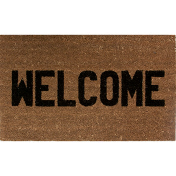 De schraapmat Welcome 45x75cm naturel/zwart is een schoonloopmat met een perfect schrapende werking. De mat is gemaakt van design rubber en kokos, en voorziet uw woning van een exotische look. Dankzij de neutrale kleurstelling past de mat in ieder interieur. De mat heeft een perfect schrapende werking, waardoor vuil achterblijft op de mat en de vloeren van uw woning schoon blijven. Afmeting: 45x75cm.