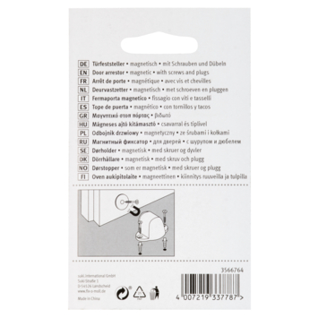 Deze magnetische deurstopper beschermt muren en meubels op betrouwbare wijze tegen beschadigingen. Deze deurstopper houdt deuren op veilige wijze open dankzij de sterke magneet. De magnetische verbinding kan eenvoudig weer worden losgemaakt.