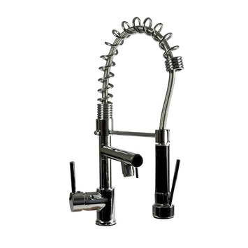 Deze keukenkraan Grand Chef is gemaakt voor ieder design keuken. De keukenkraan beschikt over 2 kranen, waarvan de onderste draaibaar is van links naar rechts. De bovenste (spoelkraan) wordt vaak gebruikt om mee af te wasssen.
