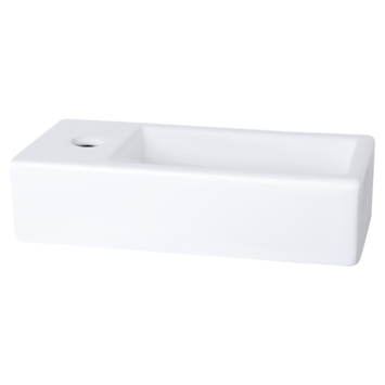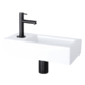 DeDiffernz Fonteinset Ravo Links Wit Keramiek past met zijn strak witte baken zwarte accessoires perfect in een trendy toilet. De sifon en afvoerplug zijn net als de kraan zwart afgewerkt, waardoor een mooi geheel ontstaat. De kraan, de afvoerplugen de sifon zijn meegeleverd. De fontein zelf is gemaakt van keramiek en 38,5x18,5x9cm groot.
