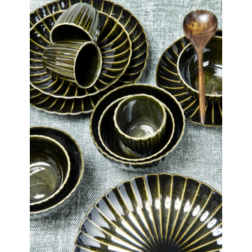 Tafelen wordt veel aangenamer met dit dinerbord. Het dinerbord heeft een prachtige vormgeving met geribbelde strepen over het geheel oppervlak. In combinatie met de aparte donkergroene kleur zorgt het voor een feestelijke uitstraling. Het is gemaakt van keramiek en heeft als afmeting H4 x ø27,5 cm. Het dinerbord is daarnaast is vaatwasser- en magnetronbestendig. Wanneer trommel jij je familie en vrienden op voor een gezellig diner?