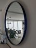 De zwart metalen rand van de spiegel heeft een dikte van 4 mm en diepte van 5 cm.