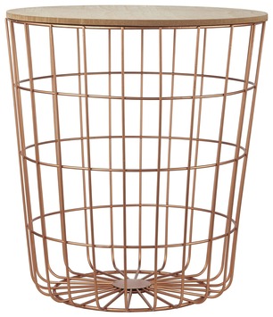 De draadmand metaal/hout koper Ø39x42 cm is te gebruiken als decoratie, maar heeft natuurlijk ook een opbergfunctie. Hou je huis opgeruimd door rondslingerende spullen in de draadmand op te bergen. De draadmand van metaal heeft een houten deksel waardoor je de mand ook kunt gebruiken als bijzettafel. De draadmand is 42 centimeter hoog en heeft een diameter van 39 centimeter.