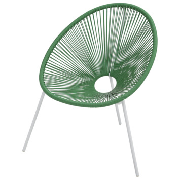 De stoel Haïti groen is een hippe draadstoel. De stoel heeft een wit metalen frame en heeft groene kunststof draden. De trendy stoel ziet er niet alleen leuk uit maar zit ook comfortabel. Het opvallende unieke design zorgt ervoor dat deze stoel een echte eye-catcher is in je tuin. De stoel heeft een frisse groene kleur, maar is ook verkrijgbaar in zwart, geel en wit. Door deze kleuren te combineren creeer je een vrolijk en speels effect. Zo is je tuin helemaal klaar voor een tuinfeestje.